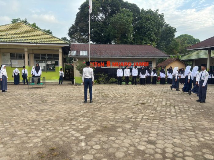 Muaro Jambi � MTsN 8 Muaro Jambi melaksanakan upacara bendera pada Senin, 2 Februari 2026. Kegiatan yang berlangsung di halaman madrasah tersebut dipimpin langsung oleh Kepala Madrasah, Ibu Leni Sartika,...